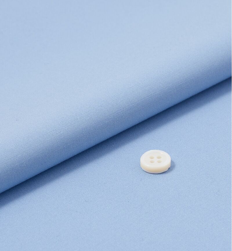 やや薄いオールシーズン着用でき、絶妙な柔らかさがビジネスシャツに最適です。少しシワになりますが、形態安定加工もあるので安心です。